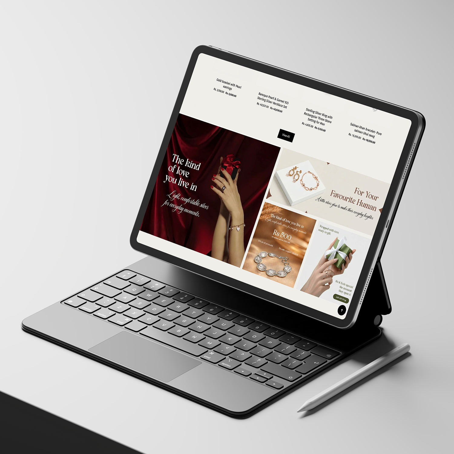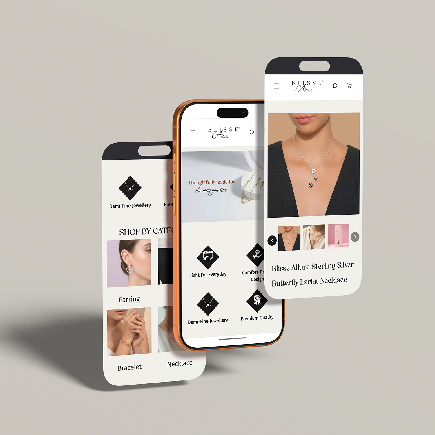 Focus: Clean, premium visual language tailored for the 23–35 silver jewellery audience with strong mobile usability.